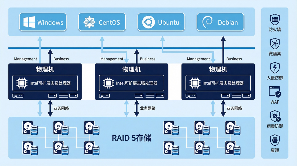 XXX有限公司原使用裸金属物理服务器部署业务系统,采用X86架构处理器,配置3块4TB SSD硬盘并通过RAID5保障数据冗余。随着业务规模扩大,传统物理架构暴露出以下问题: