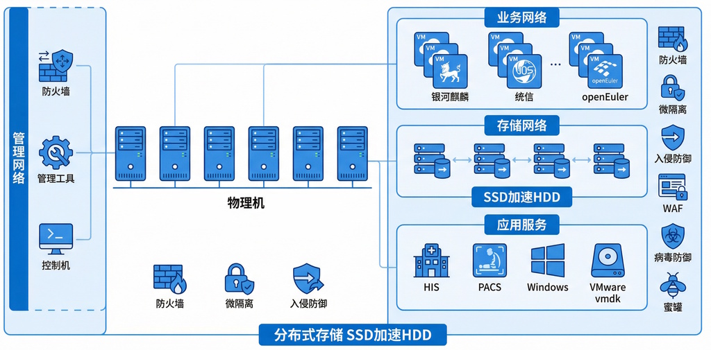 医院希望在不更换现有服务器硬件的前提下,通过升级改造解决上述问题,同时符合医疗行业等保要求。