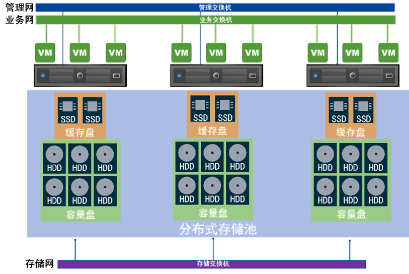 2块960GB SSD作为缓存加速层,提升虚拟机I/O性能。