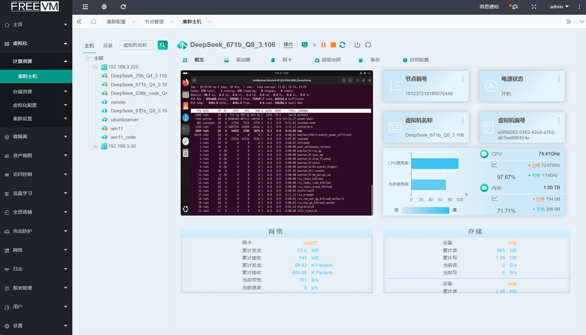 FreeVM 超融合算力云平台一体机是一款集成多种功能的高度智能化算力设备,专为支持大模型的运行和管理而设计。以下是其主要特点和优势: