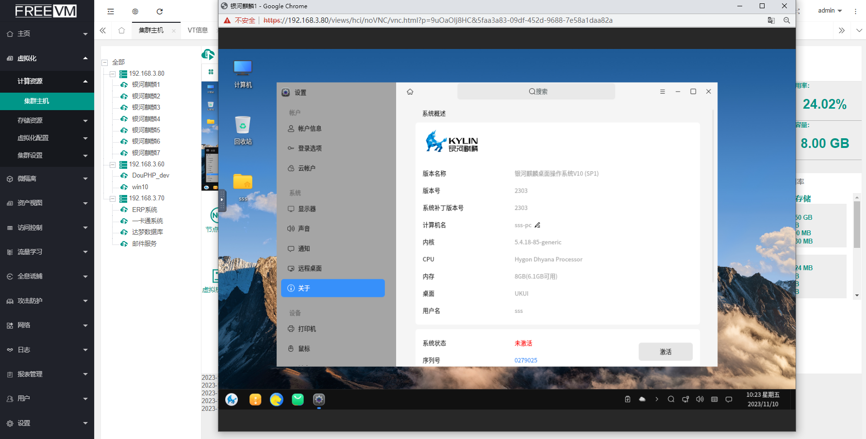 FreeVM虚拟化技术的诞生是极元信息多年深耕虚拟化领域的产物。它不仅具备了出色的性能和稳定性,还拥有灵活简单、高效便捷的特点。通过FreeVM虚拟化技术,用户可以在物理计算机上创建和管理多个虚拟机,实现资源的合理调配和高效利用。同时,该技术支持国产海光处理器特有的架构,支持海光3000/5000/7000系列处理器,进一步提升了虚拟化环境的性能和安全性。